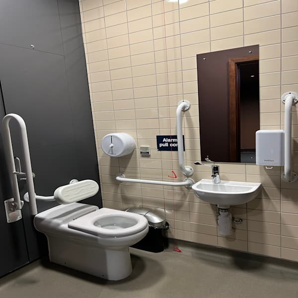 Accessible toilets are available on each level. On the ground floor there are three accessible toilets located between doors B, C and D into the stalls, and one Changing Places facility located by door B.