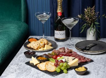 Indulgence Package (served in the Maritime Room pre-show) | Indulgence Experience for Two | Treat yourself to a spectacular platter of British & Continental meats and cheese delights accompanied by a glass of Moet Champagne for an indulgent occasion. | £47.50 per person |