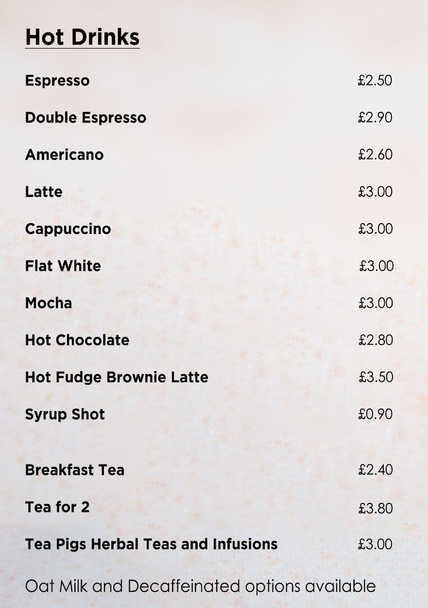 In addition to our hot food options, we are proud to offer a selection of fairtrade coffees from Caffe Praego. Coffee not your cup of tea? Why not choose from a range of Tea Pigs specialty teas, with a free hot drink when you reach your 6th stamp on our loyalty card, it would be rude not to.